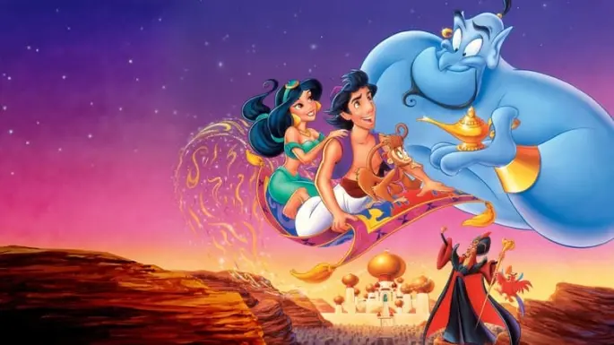 Gilbert Gottfried, Jonathan Freeman, Linda Larkin, Robin Williams, Scott Weinger